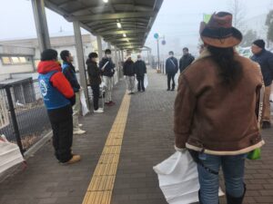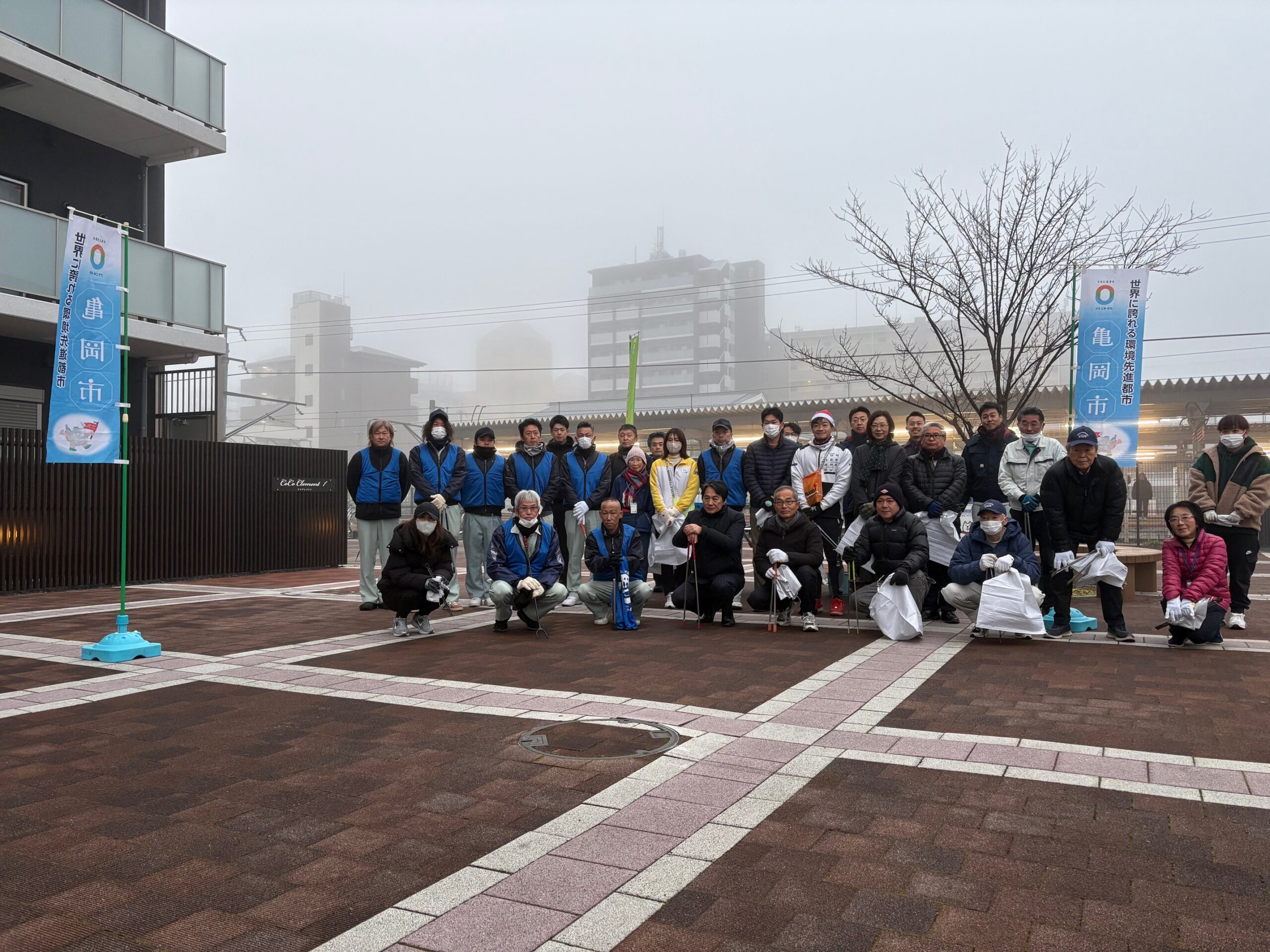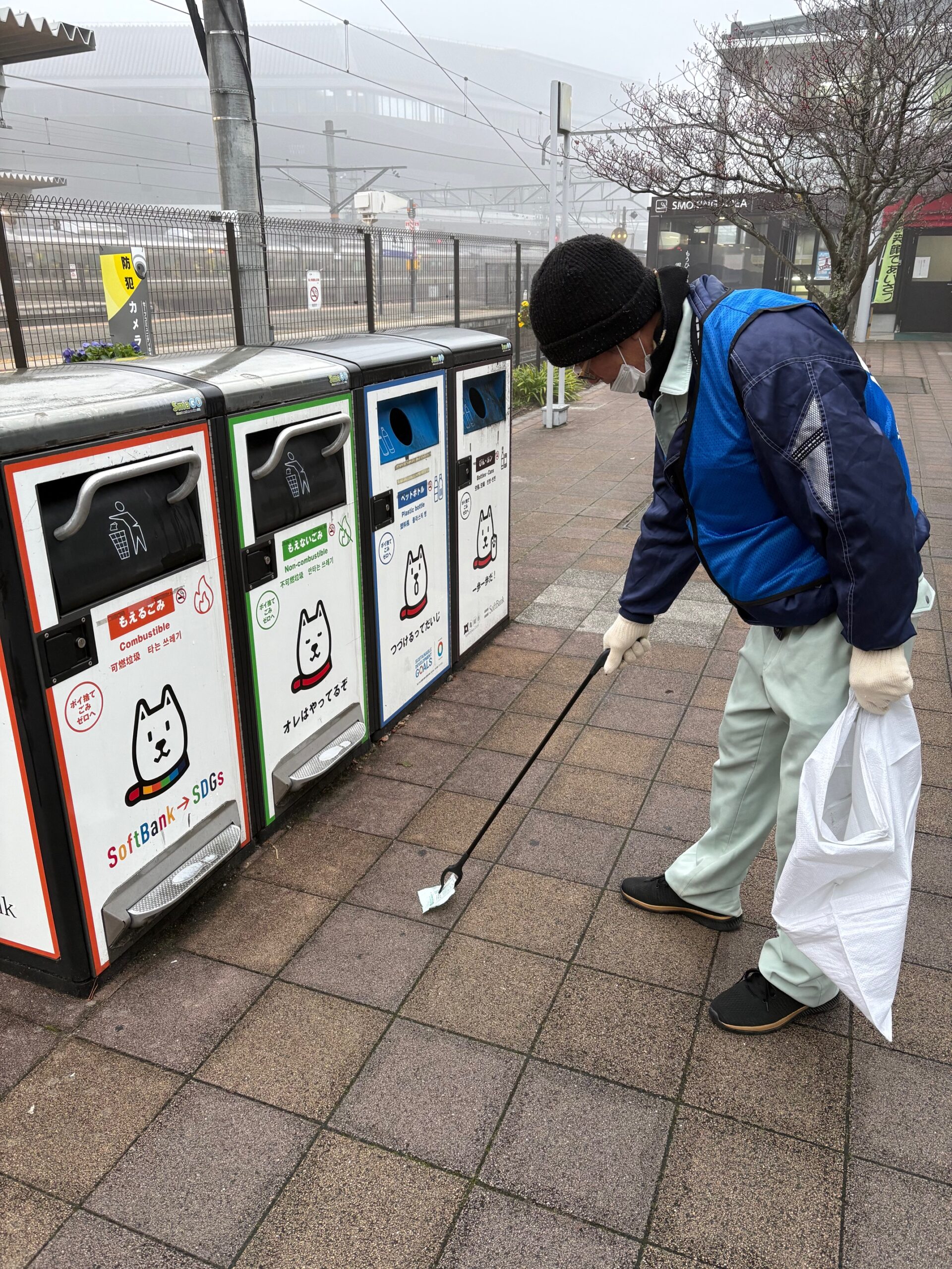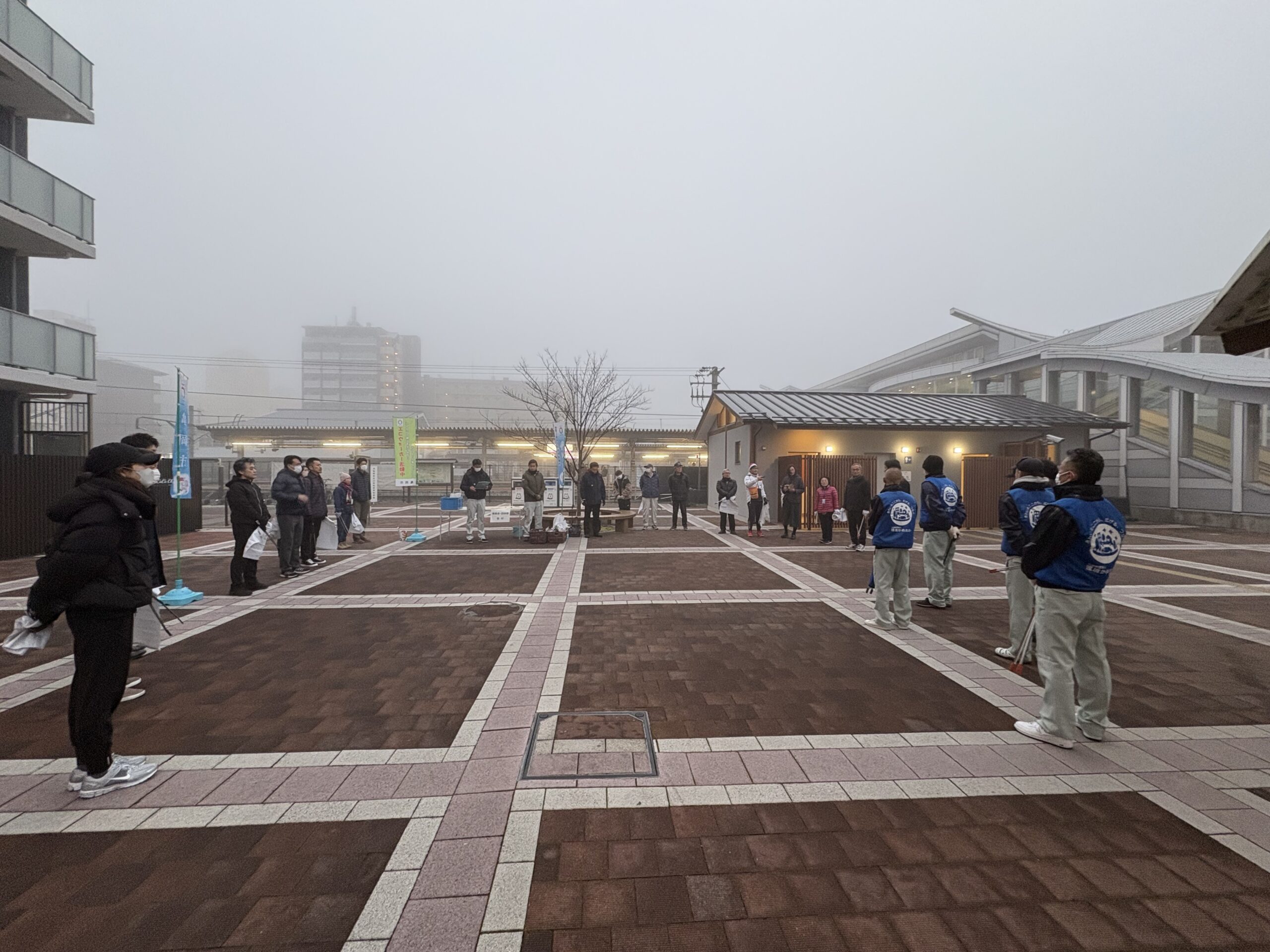 令和7年12月19日(金)、亀岡市内にあるJR4駅のポイ捨て防止重点地域で「年末一斉クリーン作戦」が行われ、当法人職員も参加し清掃活動を行いました。
