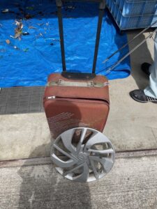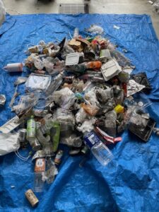 令和7年6月25日(水)、エコトピア亀岡付近の美化活動を行いました。よく捨てられているペットボトルや空き缶等のほかに、キャラバン隊活動では拾いにいけない場所に不法投棄ごみがありました。スーツケース、アルミ・スチールの(ホイールのみに限る)は「粗大ごみ」として処分することができます。ごみの正しい分別にご協力お願いします。