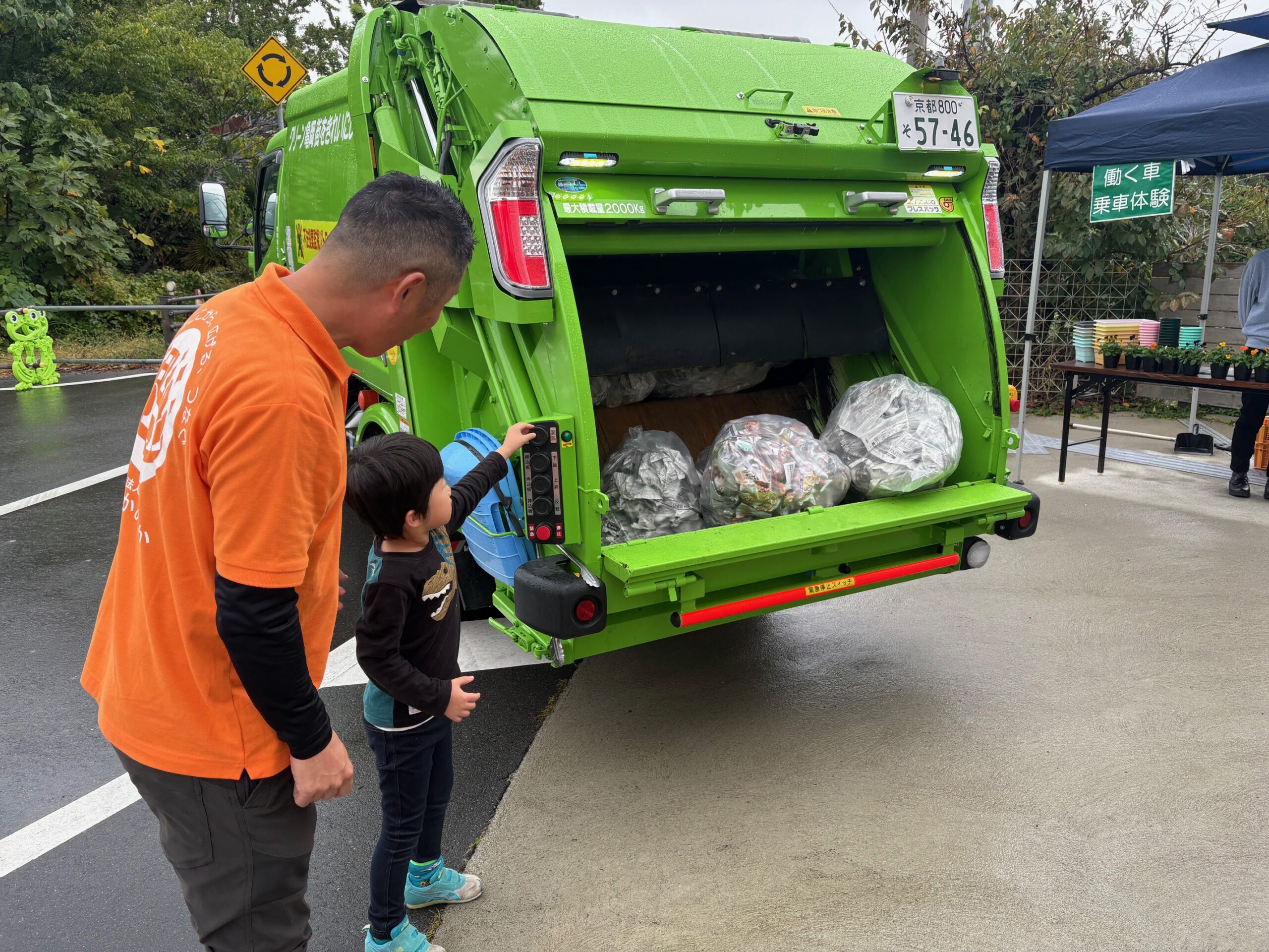 令和7年10月26日(日)に開催された「クリーンかめおかフェスティバル(主催:クリーンかめおか推進会議)」で、不要になったデニムを活用した「デニムDIY、,生ごみを堆肥へ再利用する「ダンボールコンポスト作り」の2種類のワークショップを開催しました!私たちが使用している働く車「パッカー車」も展示し来場者の方に試乗や積み込み体験をしていただきました!